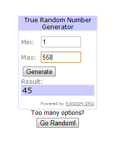 Recién terminé la lista e hice el sorteo, tenía pensado grabar un vídeo pero no me salió, y teniendo en cuenta que a nadie le importa, no lo hice.