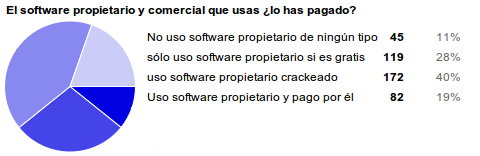 Esta pregunta, un poco engañosa por las cosas que compara, apuntaba a mostrar cuándo priorizamos las características técnicas del programa. Por un lado, aquellos que prefieren prescindir de algunas funcionalidades, en pos de la filosofía detrás del software libre. Yo por ejemplo, soy de esos. Tal vez no lo haría, en un caso extremo que la funcionalidad que le falta al Soft Libre sea fundamental (cosa que en teoría no debería ocurrir, ya que sin importar qué se supone que haga un programa, siempre lo programamos de tal forma que lo fundamental lo haga, en lo que diferimos es en los detalles extras) o si es fundamental para mí. Un ejemplo extremo de esto son los videojuegos. Si sos fiel al soft libre, o no jugás o lo hacés al más puro estilo propietario: pagando o crackeando. Otros, resignarán funcionalidad si hay que pagar por ese extra, pero manteniéndose en la legalidad y otros no están dispuestos a usar otra cosa que no sea lo mejor de lo mejor del mercado, o pagando o usando copias crackeadas. Pero en el mundo ideal, lo que te tiene que importar más del software libre no es ni el precio ni si es el mejor de lo mejor, sino las libertades que te brinda.