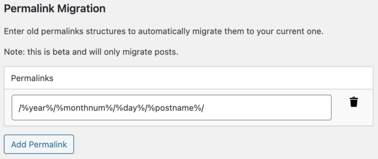 Le di vueltas un buen rato hasta que, intentando crear una redirección «genérica» me salió un mensaje. En la configuración de Redirections hay que ir a la tercer pestaña, Sitio, y en Permalink Migration agregar la estructura vieja de permalinks. Guardamos cambios y ahora sí debería funcionar, y si alguien viene desde otra página web por el link n3ri.com.ar/2022/04/titulo, debería ser redirigido a n3ri.com.ar/titulo y debería poder ver el artículo.